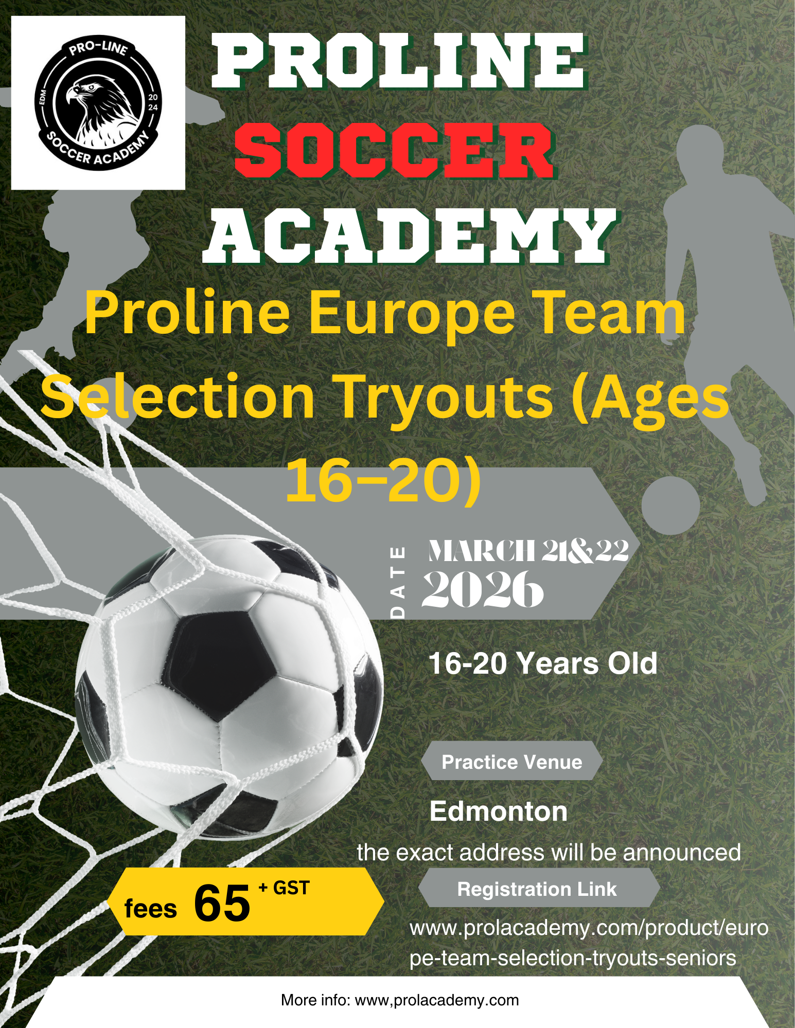 Proline Soccer Academy is assembling an elite squad of players aged 16 to 20 to represent the academy on an upcoming European tour.